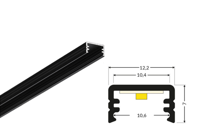 Die schwarze, eloxierte Oberfläche verleiht dem Profil eine edle, zeitlose Optik und sorgt gleichzeitig für erhöhten Schutz vor Korrosion, Kratzern und Abnutzung. Besonders in modernen, dunklen oder kontrastreichen Einrichtungskonzepten setzt dieses LED-Aluminiumprofil elegante Akzente.