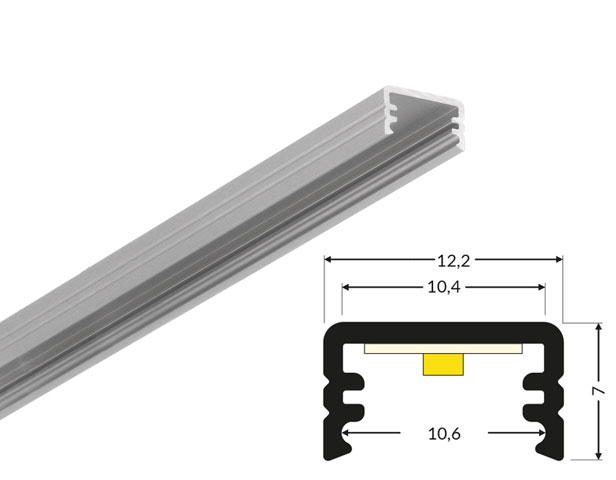 Das Alu Profil Slim8 flach in silber eloxiert überzeugt durch sein modernes, minimalistisches Design und seine vielseitige Einsatzmöglichkeit. Mit einer geringen Aufbauhöhe eignet sich dieses flache Aluminiumprofil ideal für eine dezente LED-Beleuchtung in Möbeln, Regalen, Küchen, Vitrinen oder zur Akzentbeleuchtung im Wohnbereich.