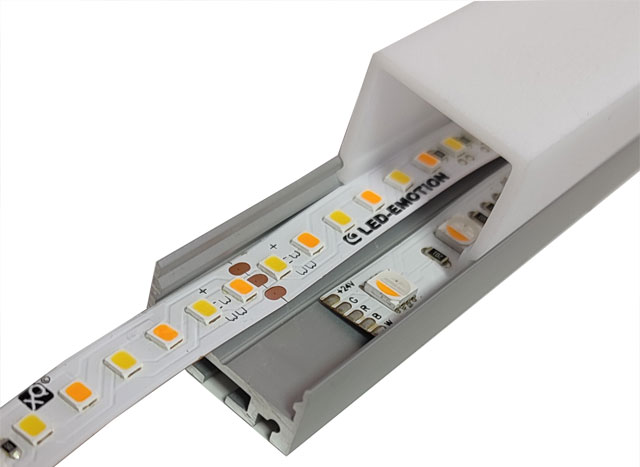 und jeweils in den Farben transparent, diffus und opal zur Verfügung. Die Abdeckung lässt sich einfach in das Profil einklicken. Sie muss separat bestellt werden.