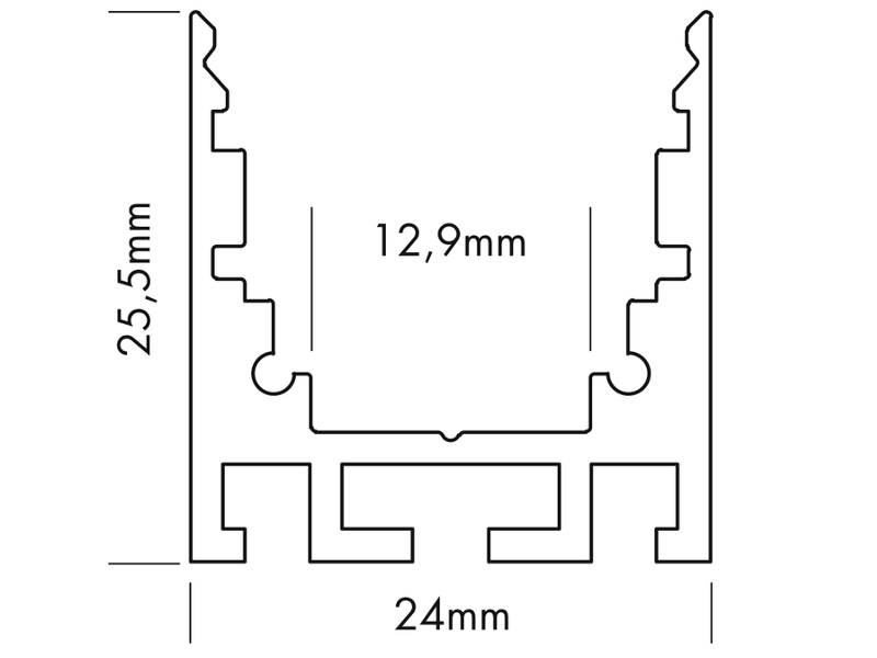 M-Line Standard 24 LED-Profil aus eloxiertem Aluminium. Leichtes miteinander verbinden mehrerer Profil durch zusätzlich erhältliche Profilverbinder möglich. Eine homogene Beleuchtung in diesem 25,5mm hohen Profil erhalten Sie bereits mit unserem LED Streifen Eco-Line mit 56LEDs/m. Und natürlich auch mit unseren Premium Streifen ab 70LEDs/m.