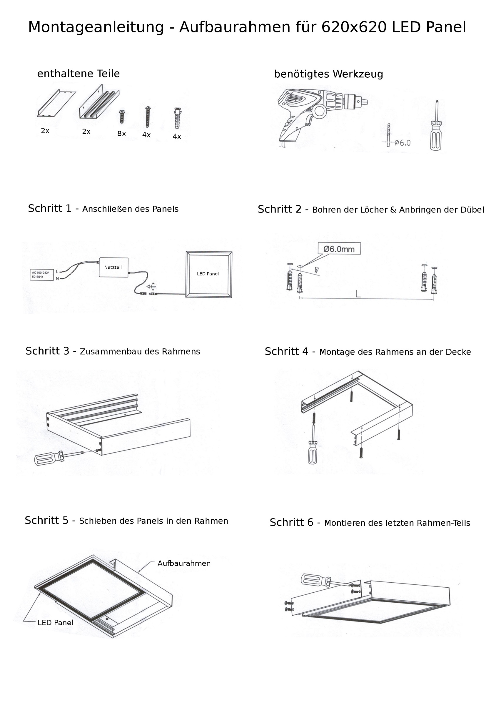 Aufbaurahmen für LED-Panel 620x620 weiß