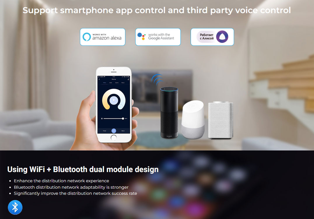 - Unterstützt Sprachsteuerung von Drittanbietern (Alexa, Google Assistant)
