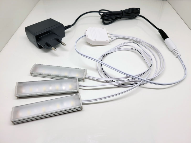 - 3 XS LED-Leisten mit 0,50m Anschlusskabel (rückseitig mit 3M Klebeband)