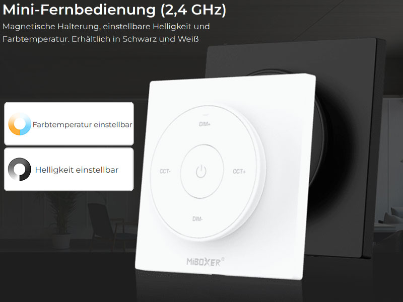 - 2,4G RF-Funkübertragungstechnologie (kann Produkte der MiBoxer/Mi-Light 2.4G-Serie steuern)