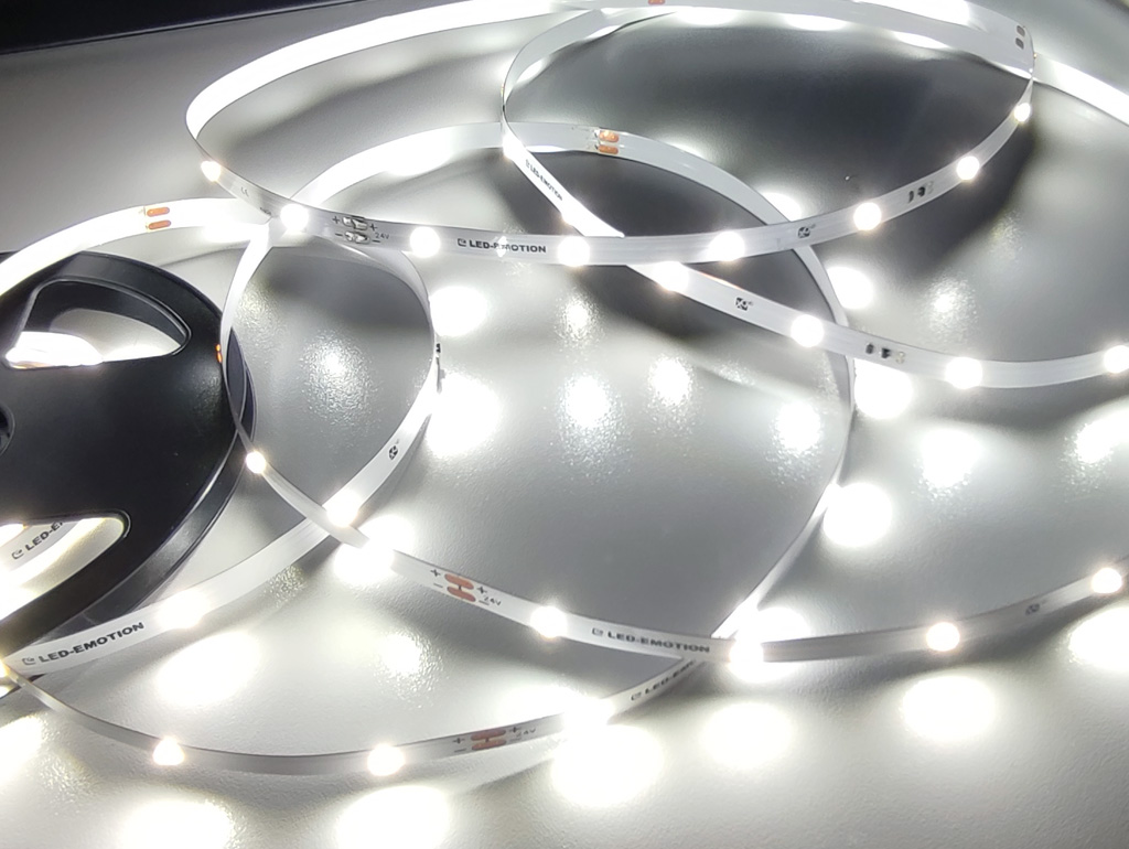 Premium Backlight LED-Streifen, 6500K purweiß, 600lm/m, 3.8W/m, 28LEDs/m, 24V