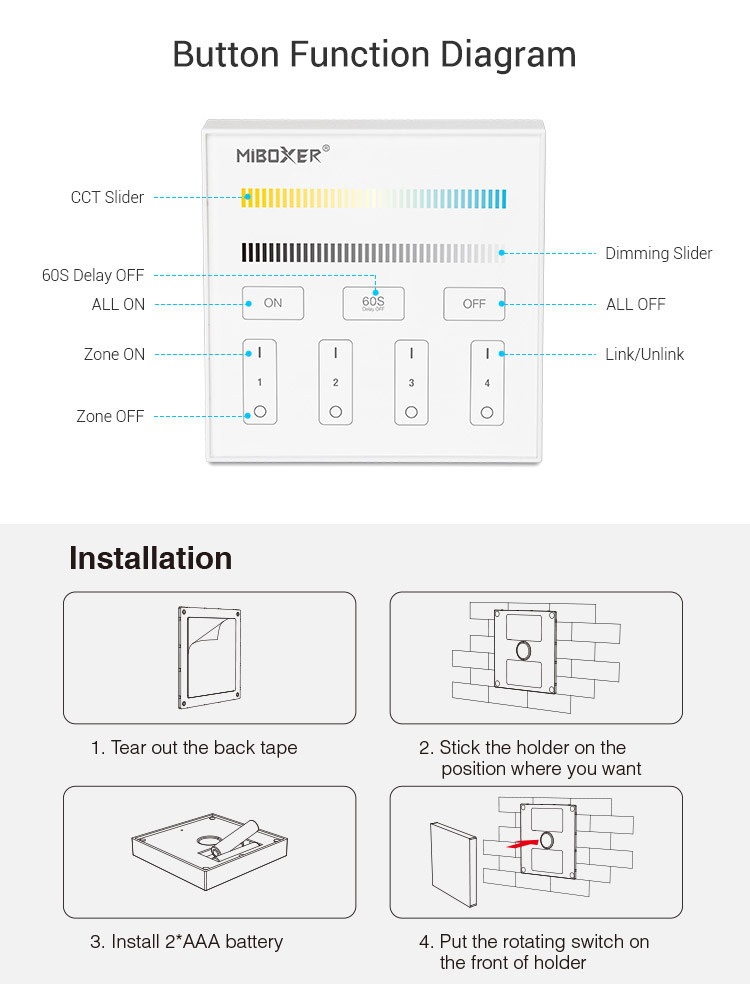 Produktinformationen "Wandfernbedienung Dualwhite Controller 4 Zonen"