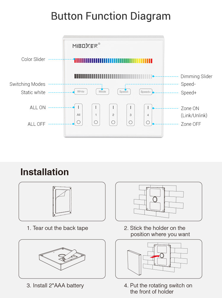 Produktinformationen "Wandfernbedienung RGB Controller 4 Zonen Milight"