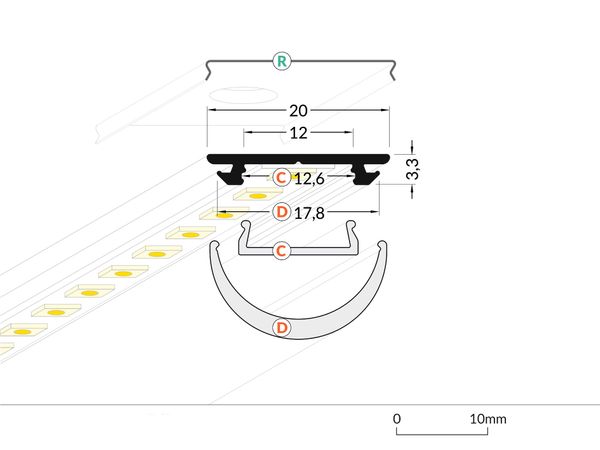 biegbares Alu Profil mit halbrunder Abdeckung opal