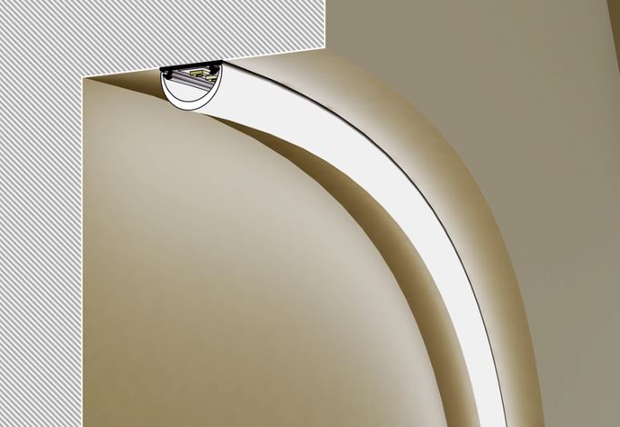 Mit seiner natürlichen Aluminiumoberfläche überzeugt das Profil durch eine zeitlos moderne Optik und hervorragende Wärmeableitung. Dadurch werden LED-Stripes optimal geschützt und ihre Lebensdauer deutlich verlängert. Das biegbares ARC12-Profil lässt sich individuell an Rundungen, Formen und Kurven anpassen und eröffnet völlig neue Gestaltungsmöglichkeiten in der Lichtplanung.